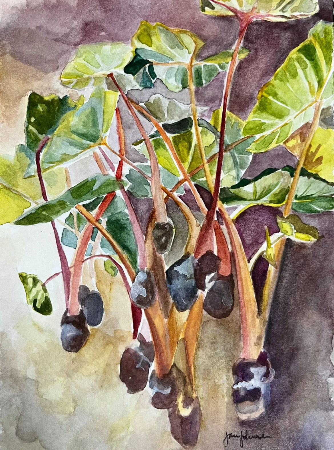 Taro, Watercolor on Paper, 2025, Original - 5x7", $140. Jane Johannsen