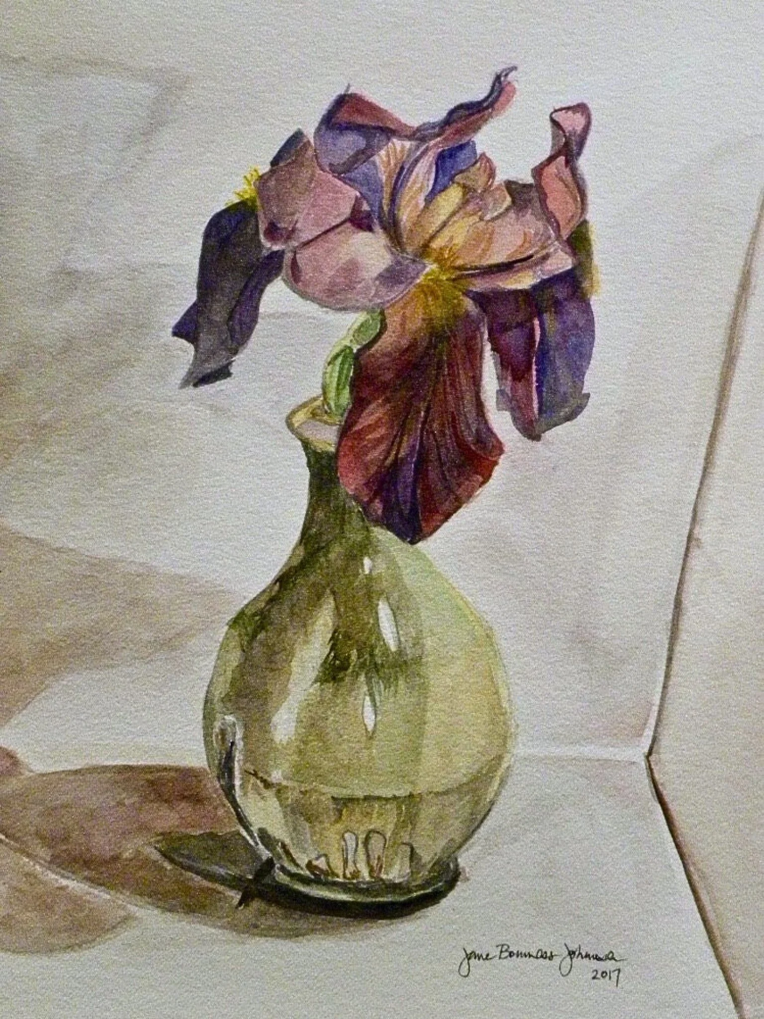 Iris in Vase, Watercolor on Paper, 2017. Sold. Jane Johannsen